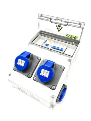BAUSTROMVERTEILER RSE 15 – 2x16A/5P, 4x230V – Komplett verdrahtet mit Hager Sicherungen