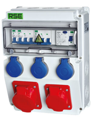 BAUSTROMVERTEILER RSE 13 – 32A/5P, 16A/5P, 4x230V – Komplett verdrahtet mit Hager Sicherungen